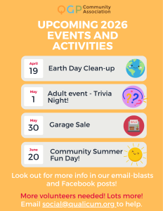The Qualicum Graham Park Community association is busy planning our spring and summer events! Mark your calendars, and follow-us on our Facebook page for more updates.